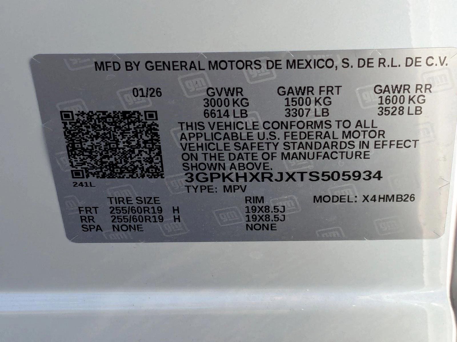 VIN: 3GPKHXRJXTS505934