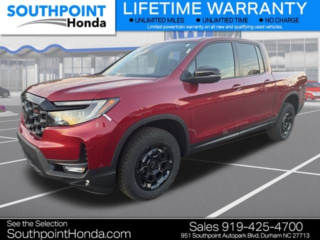 Radiant Red Metallic II 2026 Honda Ridgeline TrailSport+ AWD 9-Speed Automatic 3.5L V6 SOHC i-VTEC 24V R-580m/Black Leather. We are pleased to present this Ridgeline TrailSport+ which includes the following features. Southpoint Honda: Durham's Premier Automotive Resource Serving Apex, The Downs, Chapel Hill, and Raleigh at Southpoint Honda, we understand that buying a car is more than just a transaction. Our team is dedicated to guiding you through every step of your automotive journey, from selecting the perfect new or used Honda to maintaining your vehicle with expert service and genuine OEM parts. We're committed to helping you achieve your automotive dreams. Why choose Southpoint Honda? Drivers from Apex, The Downs, Chapel Hill, and Raleigh consistently choose Southpoint Honda for our exceptional service. Whether you need assistance with sales, service, parts, or financing, our team is here to provide high-quality, modern support. Our in-house finance experts are ready to help you find the best auto loans, leasing deals, and finance packages to meet your needs. We aim to make your experience simple and convenient, whether you're buying, trading in, or getting your vehicle repaired. Visit us in Durham and experience the unique Southpoint Honda customer service in person. Make the trip from Apex, The Downs, Chapel Hill, or Raleigh to our Durham location and discover how enjoyable car shopping and ownership can be with a professional dealership by your side. We're here to answer all your questions and assist with all your vehicle needs.