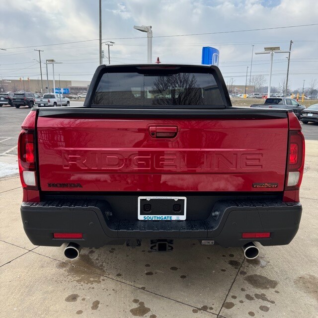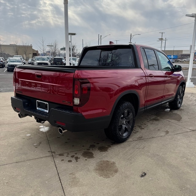 Radiant Red Metallic II 2026 Honda Ridgeline TrailSport AWD 9-Speed Automatic 3.5L V6 SOHC i-VTEC 24V R-580m/Black Leather. We are your Downriver Dealer! Proudly Serving Southgate, Detroit, Grosse Ile, Wyandotte, Taylor, Allen Park, Dearborn, Monroe and our Southeast Michigan Communities! Check out all these great options R-580m/Black Leather, 4-Wheel Disc Brakes, 4.33 Axle Ratio, 7 Speakers, ABS brakes, Air Conditioning, Alloy wheels, AM/FM radio: SiriusXM, Auto-dimming Rear-View mirror, Automatic temperature control, Blind Spot Information (BSI) System warning, Bluetooth Hands-Free Link, Brake assist, Bumpers: body-color, Compass, Delay-off headlights, Driver door bin, Driver vanity mirror, Driver's Seat Mounted Armrest, Dual front impact airbags, Dual front side impact airbags, Electronic Stability Control, Emergency communication system: HondaLink Assist, Exterior Parking Camera Rear, Four wheel independent suspension, Front anti-roll bar, Front Bucket Seats, Front dual zone A/C, Front fog lights, Front reading lights, Fully automatic headlights, Garage door transmitter: HomeLink, Heated door mirrors, Heated Front Bucket Seats, Heated front seats, Heated steering wheel, Honda Satellite-Linked Navigation System, Illuminated entry, Leather Seat Trim, Leather steering wheel, Low tire pressure warning, Memory seat, Navigation system: Honda Satellite-Linked Navigation System, Occupant sensing airbag, Outside temperature display, Overhead airbag, Overhead console, Panic alarm, Passenger door bin, Passenger seat mounted armrest, Passenger vanity mirror, Power door mirrors, Power driver seat, Power moonroof, Power passenger seat, Power steering, Power windows, Radio data system, Radio: 215-Watt Audio System with 7 Speakers, Rear air conditioning, Rear anti-roll bar, Rear reading lights, Rear seat center armrest, Rear step bumper, Rear window defroster, Remote keyless entry, Security system, SiriusXM, Speed control, Speed-sensing steering, Split folding rear seat, Steering wheel mounted audio controls, Tachometer, Telescoping steering wheel, Tilt steering wheel, Traction control, Trip computer, Turn signal indicator mirrors, Variably intermittent wipers, and Wheels: 18" Trailsport Shark Gray Alloy.