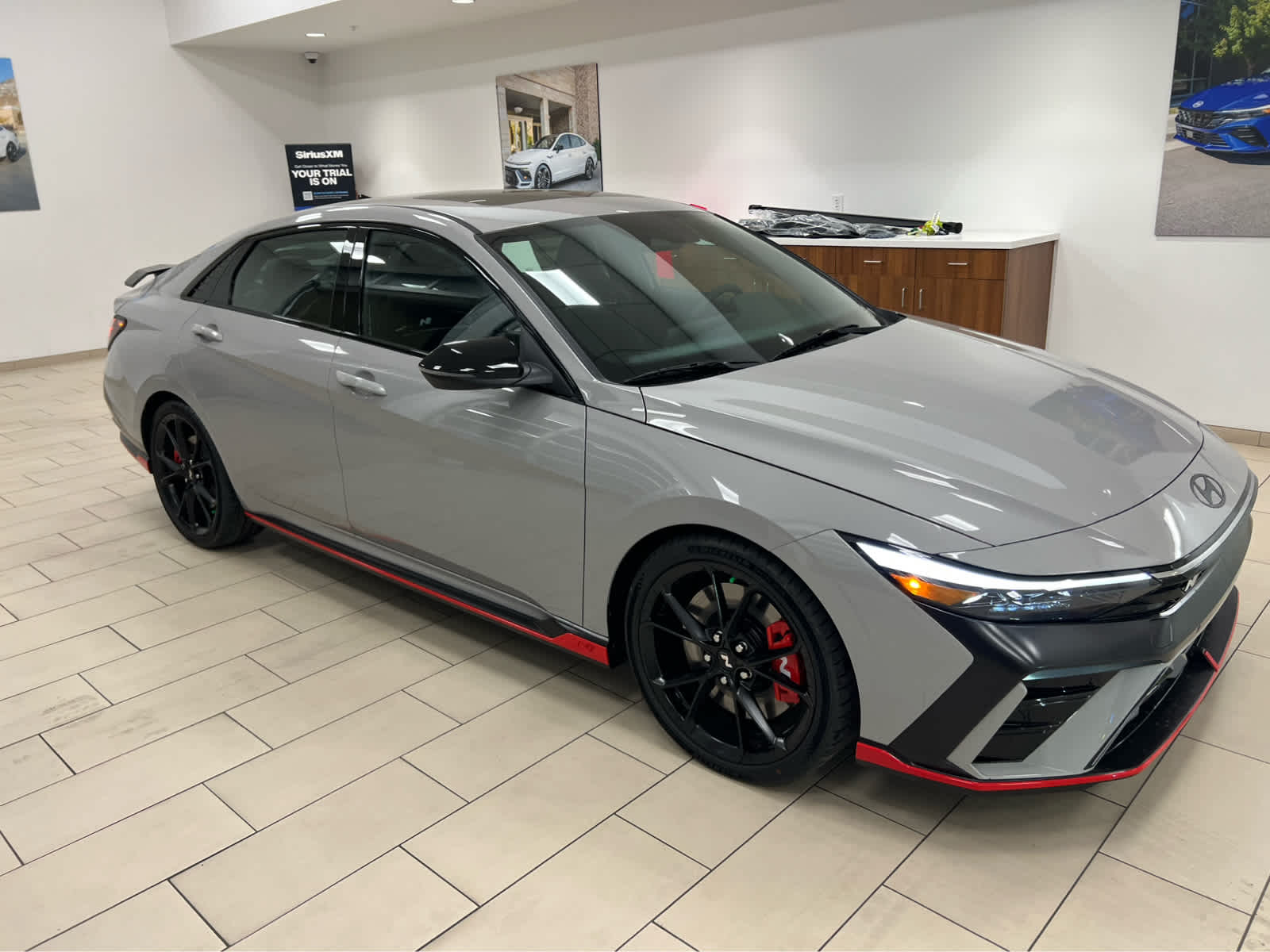 Nav System, Moonroof, Heated Leather Seats, Premium Sound System, Back-Up Camera, Turbo Charged Engine, Aluminum Wheels, All Season Fitted Liners, Satellite Radio. Cyber Gray exterior and Black w/Blue Stitching interior. Hyundai Elantra N with Cyber Gray exterior and Black w/Blue Stitching interior.
