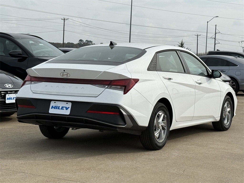 Serenity White 2026 Hyundai Elantra SE I4 CVT. Hiley Hyundai of Burleson is proud to be part of the Hiley Auto Group, a trusted, family-owned dealership group serving Texas drivers for over 30 years. We proudly serve customers from Dallas, Fort Worth, Arlington, Mansfield, Irving, Weatherford, Hurst, Euless, Bedford, Waco, and beyond. Shop our extensive selection of new Hyundai cars and SUVs, including popular models like the Hyundai Elantra, Sonata, Tucson, Santa Fe, Palisade, and more. Whether you're looking for fuel efficiency, advanced safety, or cutting-edge technology, Hyundai delivers the features you want at a price you’ll love. We offer competitive financing and lease options through top lenders like Ally, Chase, Bank of America, EECU, and others. All trade-ins are welcome, and we’re committed to making your new vehicle purchase simple, transparent, and stress-free. Come experience the Hiley difference and find your perfect new Hyundai today at Hiley Hyundai of Burleson—where customer satisfaction comes standard.