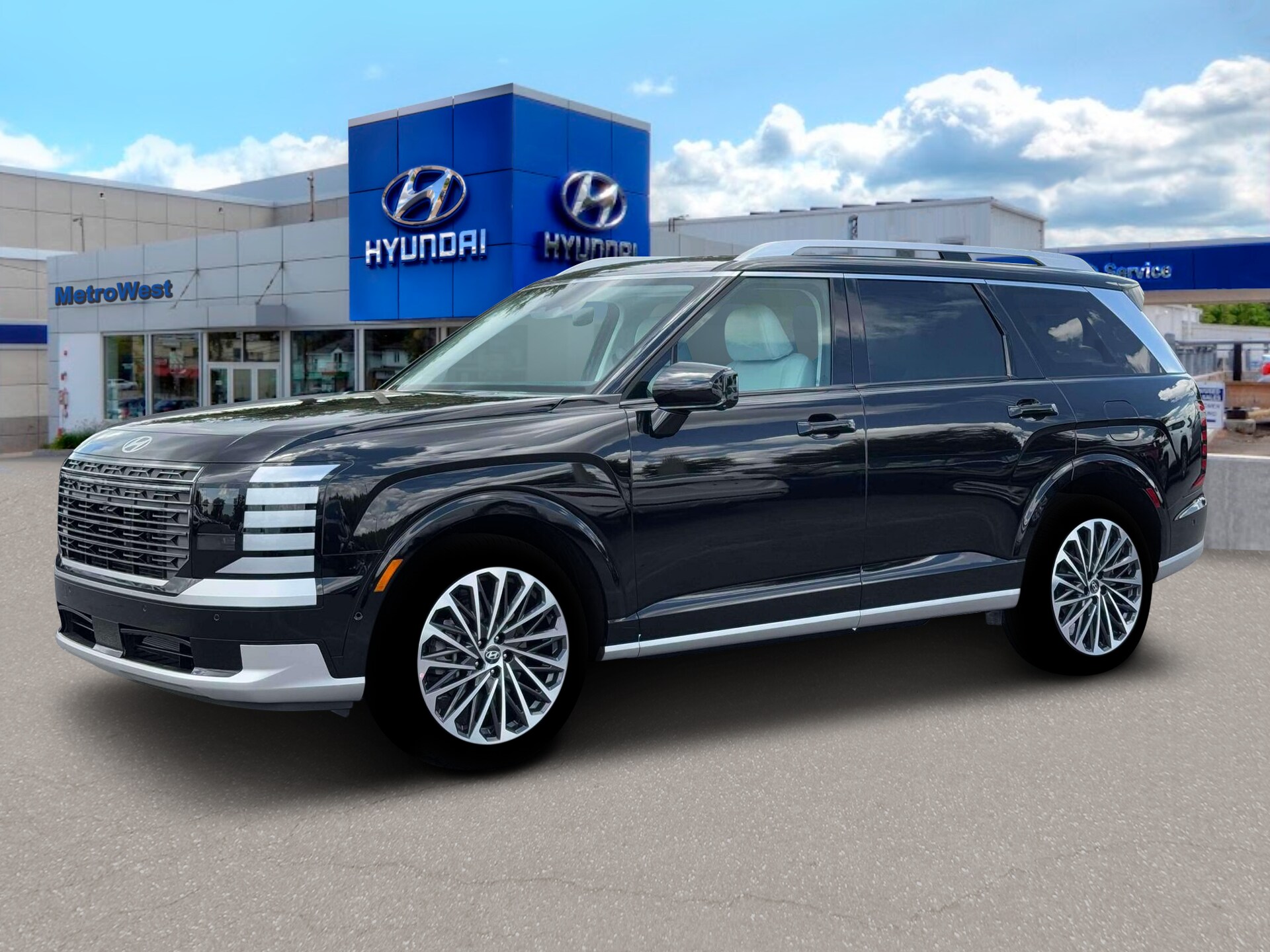 2026 Hyundai Palisade Calligraphy V6 AWD 8-Speed Automatic Abyss Black Pearl. Not all customers may qualify for all rebates or discounts listed, see dealer for details. Price includes: $1000 - Hyundai HMF Dealer Choice: $1000 discount and 5.39% APR for 24 months. $44.05 per $1000 financed. Available to well qualified buyers who finance through Hyundai Motor Finance. H704. Exp. 03/31/2026 $2000 - Sales Event Cash. Exp. 03/31/2026. Due to market conditions, prices are subject to change at any time without notification. Prices include all applicable incentives, customer, lease, loyalty, other and incremental including Federal Tax Credits. Not all customers will qualify for all applicable offers. Dealer installed options are additional. All vehicles are subject to prior sale. Price does not include $649 dealer doc fee, applicable tax, title, and license charges. Sale price on all New and Used vehicles contingent to securing financing directly from MetroWest Hyundai. Some vehicles may be demos. Retail sales only, not valid for fleet sales. Internet Pricing cannot be combined with any other advertised offer. Government 5-Star Safety Ratings are part of the National Highway Traffic Safety Administration’s (NHTSA’s) New Car Assessment Program.
