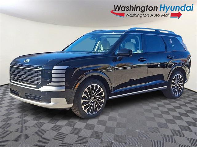 The 2026 Hyundai Palisade Calligraphy is the top-tier trim of Hyundai's flagship SUV, blending bold style, advanced technology, and premium comfort. It features a refined exterior with distinctive grille detailing, sleek LED lighting, and exclusive Calligraphy design elements that set it apart. Inside, the cabin offers upscale materials such as quilted leather seating, ambient lighting, and a driver-focused layout packed with intuitive tech. A large touchscreen, digital gauge cluster, and advanced technology make this SUV a standout.