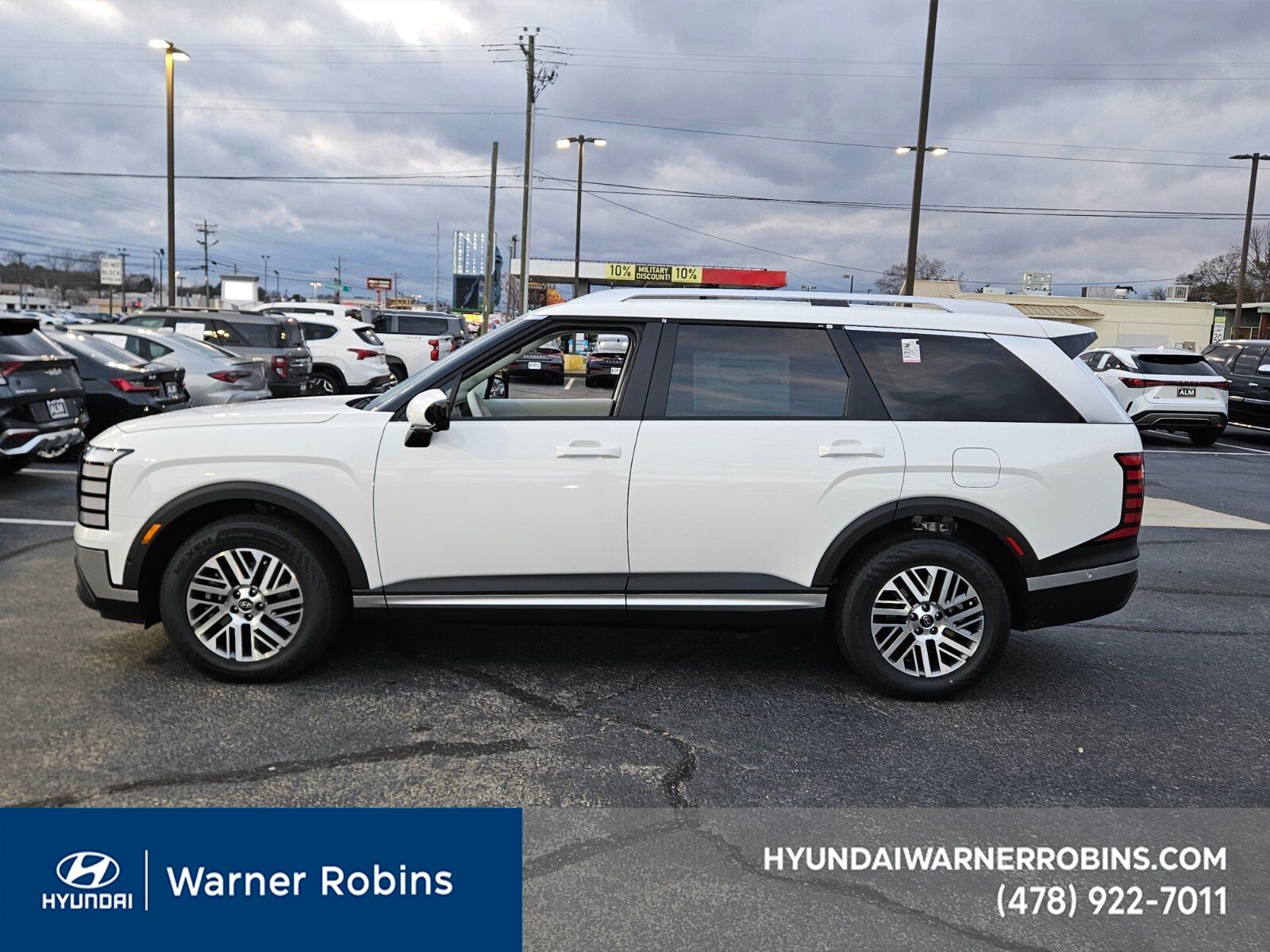 Creamy White Pearl 2026 Hyundai Palisade SEL Premium 7 Passenger FWD 8-Speed Automatic V6. 3rd row seats: split-bench, 4-Wheel Disc Brakes, 8 Speakers, ABS brakes, Air Conditioning, Alloy wheels, AM/FM radio: SiriusXM, Apple CarPlay & Android Auto, Audio memory, Auto High-beam Headlights, Auto-dimming door mirrors, Auto-dimming Rear-View mirror, Auto-leveling suspension, Automatic temperature control, Brake assist, Bumpers: body-color, Compass, Delay-off headlights, Driver door bin, Driver va...