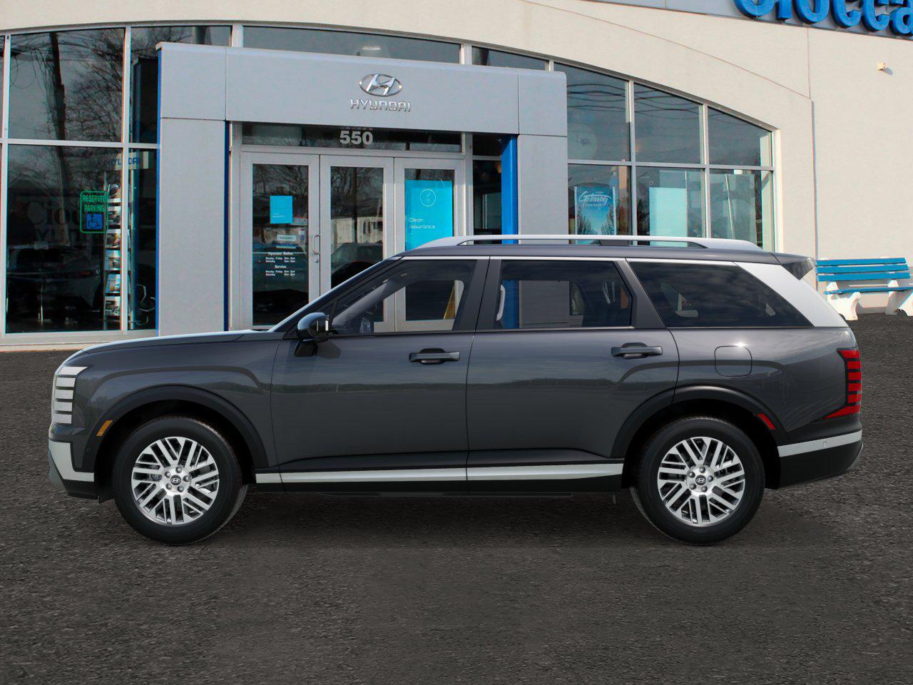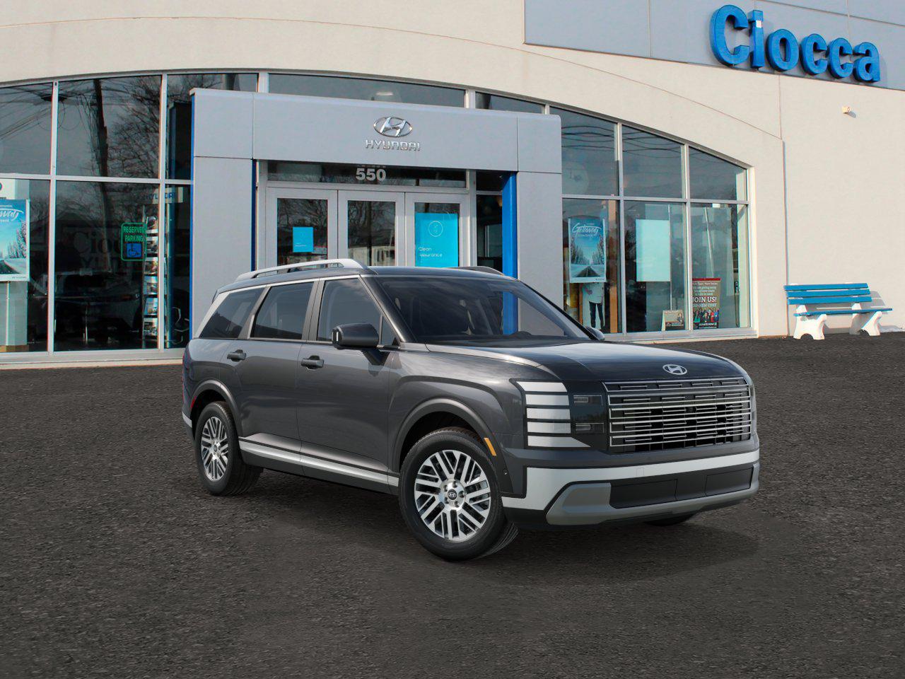 The 2026 Hyundai Palisade SEL Premium AWD is in transit to Ciocca Hyundai of Quakertown. This SUV features a V-6 engine, all-wheel drive, and a spacious interior with seating for up to 8. The vehicle is equipped with advanced technology, premium comfort, and a suite of safety features. The Palisade Hybrid Blue Premium is the lightest and fastest of its class, offering the best mileage and acceleration. The Palisade Hybrid Blue Premium and SEL Premium AWD are subject to prior sale. Price does not include applicable tax, title, license, processing, and documentation fees.
