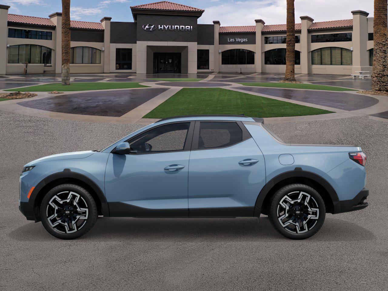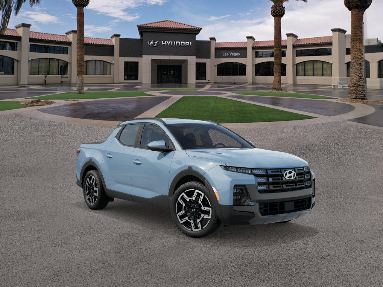 In Transit. The 2026 Hyundai Santa Cruz Limited is a versatile vehicle that combines the comfort of an SUV with the utility of a truck. It features a turbocharged engine, all-wheel drive, and a spacious interior with leather seats. The exterior is Blue Stone, and the interior is Medium Gray. This new model offers advanced safety features, a premium sound system, and a touchscreen interface. It is designed for both daily driving and outdoor adventures, providing a smooth ride, good acceleration, and a comfortable cabin.