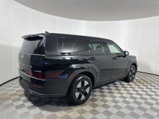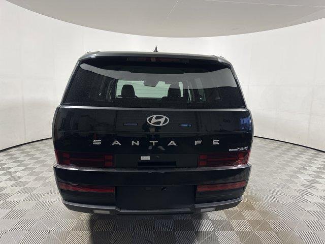 The 2026 Hyundai Santa Fe Hybrid SE AWD Sport Utility features a turbocharged 1.6L Gas/Electric I-4 engine with an intercooled turbo and a lithium ion traction battery. This vehicle offers a spacious interior with seating for seven, advanced safety features, and a range of technology and comfort amenities. The exterior is finished in Phantom Black, complemented by a black interior. The Santa Fe Hybrid is designed for efficiency and versatility, making it a practical choice for families and adventurers alike.