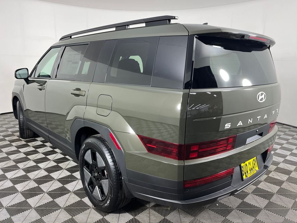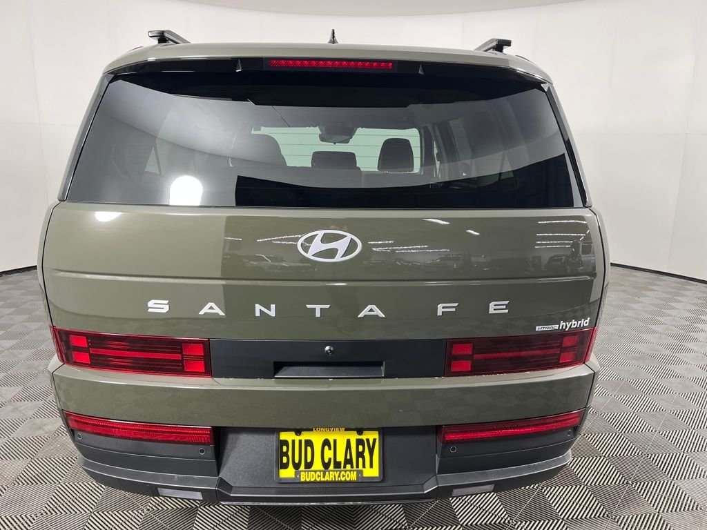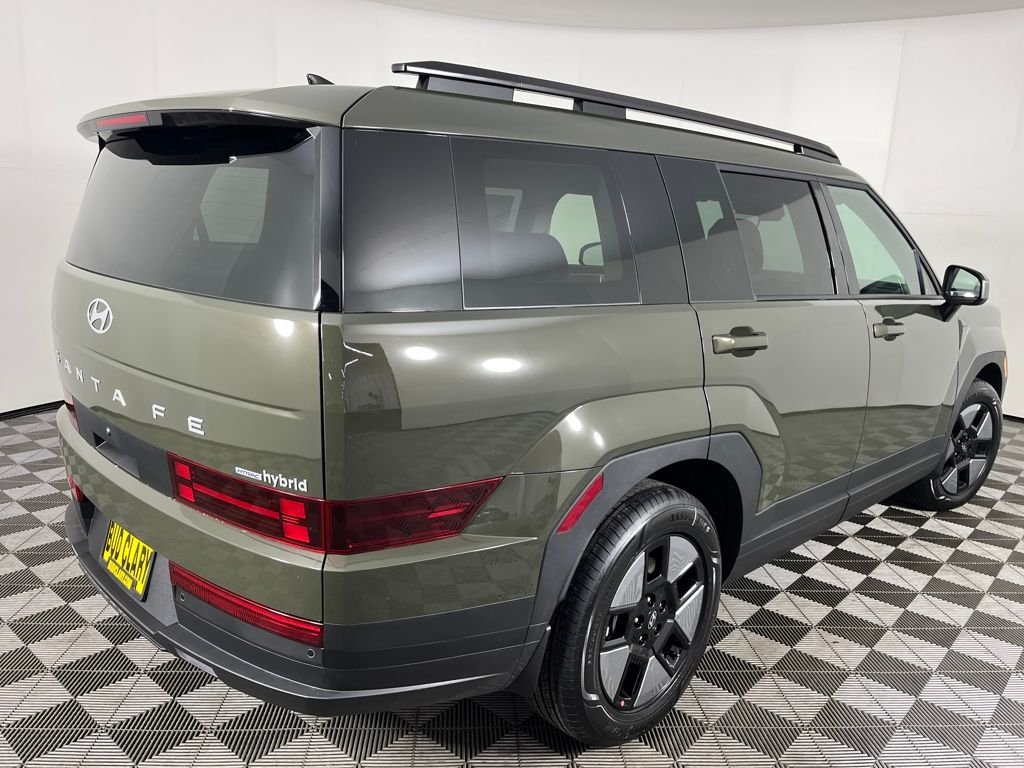 Rockwood Green 2026 Hyundai Santa Fe Hybrid SEL AWD 6-Speed Automatic with Shiftronic I4. 18" x 7.5J Alloy Wheels, 3rd row seats: bench, 4-Wheel Disc Brakes, 6 Speakers, ABS brakes, Air Conditioning, Alloy wheels, AM/FM radio: SiriusXM, Apple CarPlay & Android Auto, Auto High-beam Headlights, Automatic temperature control, Brake assist, Bumpers: body-color, Cargo Blocks, Cargo Cover/Screen, Carpeted Floor Mats, Delay-off headlights, Driver door bin, Driver vanity mirror, Dual front impact airbags, Driver Information Center, Electronic Stability Control, Engine: 1.6L Turbo GDI DOHC 16-Valve I4, Engine Order Code, Engine Type: Intercooled Turbo Gas/Electric I-4, Fuel System: Gasoline Direct Injection, Hybrid Electric Motor, Immobilizer, Lane Following Assist (LFA), Lane Departure Warning, Leather Steering Wheel, Lithium Ion Traction Battery, Parking Distance Warning - Forward/Reverse Front And Rear Parking Sensors, Rear Cross-Traffic Collision-Avoidance Assist (RCCA), Rear Side Impact Beams, Rear Child Safety Locks, Rear Parking Aid, Rear seat center armrest, Rear window defroster, Rear window wiper, Safety features listed in the vehicle description.