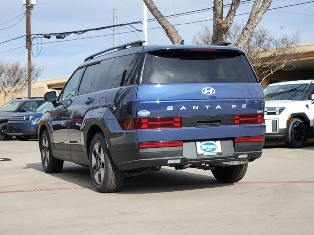 The 2026 Hyundai Santa Fe Hybrid SEL offers a blend of efficiency and comfort, featuring a turbocharged I4 engine with a hybrid electric motor. This sport utility vehicle is equipped with a 3rd row seat, heated front seats, and a range of advanced safety and technology features. The Atlantis Blue exterior is complemented by a black interior, providing a modern and spacious cabin for up to seven passengers. The vehicle is designed for both city driving and longer journeys, making it a versatile choice for families and commuters.