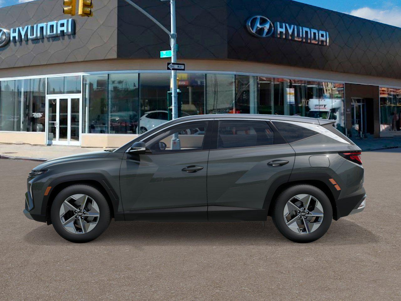 The 2026 Hyundai Tucson Hybrid SEL AWD is a new SUV in transit. It features a quiet cabin, smooth ride, and comfortable seating for five. The vehicle is powered by a hybrid electric powertrain with a lithium ion battery and offers a combined fuel economy of 37 mpg. The Amazon Gray exterior is complemented by a premium cloth interior and a range of advanced safety and convenience features.