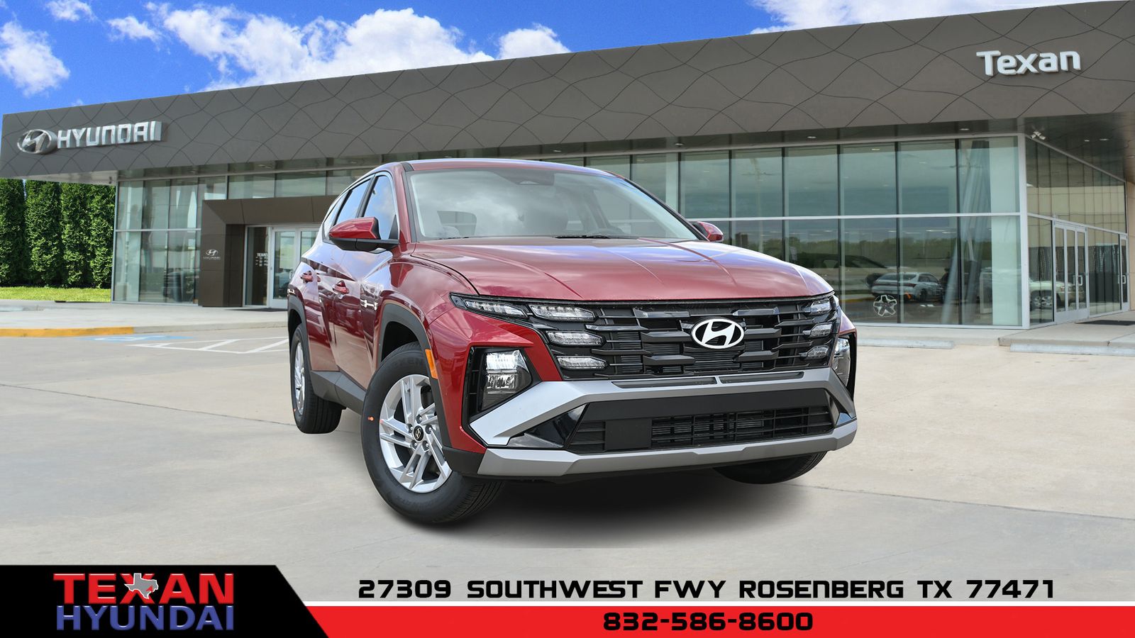 Recent Arrival! Ultimate Red 2026 Hyundai Tucson FWD SE 8-Speed Automatic with SHIFTRONIC 2.5L I4 DGI DOHC 16V LEV3-SULEV30 187hp. 25/33 City/Highway MPG. Texan Hyundai is dedicated to your satisfaction before, during, and after your purchase. We'll go the extra mile to take care of you.