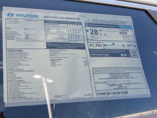Here is a 6-paragraph advertisement for the 2026 Hyundai Tucson SEL Premium SEL Premium FWD: Due to high demand please call 864-622-2747 to verify availability. Photos are for illustration purposes only, may not reflect actual vehicle features. READ>>> Hyundai of Anderson has created a VIP department just for our online customers. You can structure your entire deal online, including trade-in & payment options & reserve the vehicle for 72 hours. We can even s... (more)