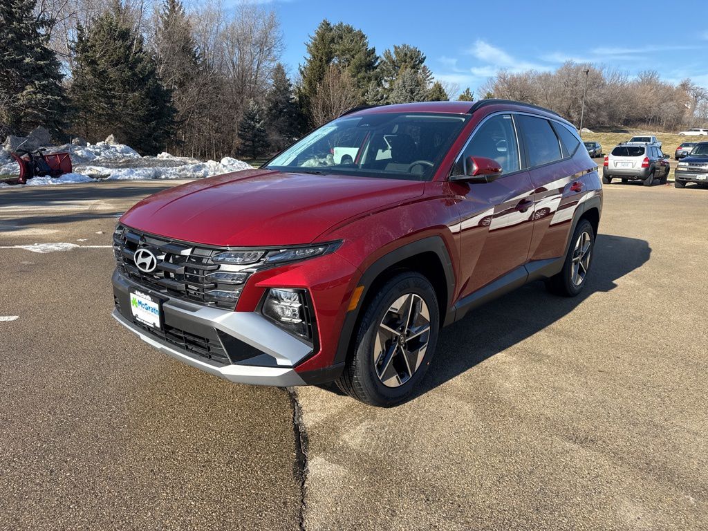 Discover the perfect blend of style, performance, and technology in the 2026 Hyundai Tucson SEL. This stunning SUV is ready to elevate your driving experience with its impressive features and exceptional value. Boasting a bold and dynamic exterior in the vibrant Red color, the Tucson SEL commands attention on the road. Complemented by the sleek Roof Rack Cross Rails, this SUV combines form and function seamlessly. Step inside and you'll be greeted by the premium H-Tex Leatherette Seat Trim, offering both comfort and sophistication. Under the hood, the Tucson SEL is powered by a 2.5L I4 DGI DOHC 16V LEV3-SULEV30 engine, delivering a remarkable 187 horsepower and paired with an 8-Speed Automatic with SHIFTRONIC transmission. Enjoy the confidence of All-Wheel Drive, along with impressive fuel efficiency, with an EPA-estimated 24 MPG in the city and 30 MPG on the highway. The Tucson SEL is packed with a host of advanced safety features, including Dual Front Impact Airbags, Dual Front Side Impact Airbags, Electronic Stability Control, and Brake Assist. Stay connected with the Bluelink+ Emergency Communication System, and let the Fully Automatic Headlights guide your way. Discover the perfect balance of style, performance, and technology in the 2026 Hyundai Tucson SEL. Experience the difference for yourself and schedule a test drive today. We're confident this SUV will exceed your expectations and become your trusted companion on the road.
