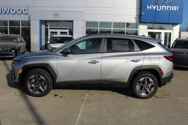 Shimmering Silver 2026 Hyundai Tucson SEL AWD 8-Speed Automatic with SHIFTRONIC 2.5L I4 DGI DOHC 16V LEV3-SULEV30 187hp AWD. 24/30 City/Highway MPG.