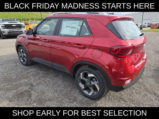 $609 off MSRP! Ultimate Red 2026 Hyundai Venue SEL FWD CVT I4 29/32 City/Highway MPG Get a great deal on a New Hyundai many with great options like Blind-Spot Collision-Avoidance Assist, Rear Cross-Traffic Collision-Avoidance Assist, Parking Distance Warning – Reverse, Lane Keeping Assist, Blind-Spot Collision-Avoidance Assist, Panoramic sunroof, Hands-free smart liftgate with auto open and adjustable height setting, Ventilated front seats, Heated rear seats (high/low), Android Auto and Apple CarPlay.