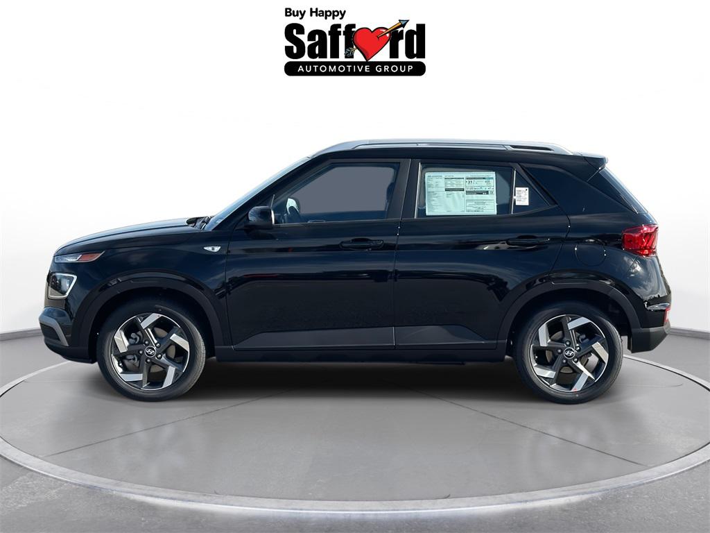 Onyx Black 2026 Hyundai Venue SEL 4-Wheel Disc Brakes, 6 Speakers, 6.5J x 17" Alloy Wheels, ABS brakes, Air Conditioning, Alloy wheels, AM/FM radio, Apple CarPlay & Android Auto, Auto High-beam Headlights, Automatic temperature control, Brake assist, Bumpers: body-color, Cargo Net, Carpeted Floor Mats, Cloth Seat Trim, Delay-off headlights, Driver door bin, Driver vanity mirror, Dual front impact airbags, Dual front side impact airbags, Electronic Stability Control, First Aid Kit, Front anti-roll bar, Front Bucket Seats, Leather steering wheel. All new vehicle prices exclude Tax, tags, and processing fee of $998 additional. Prices include freight charge. Prices include all applicable rebates and incentives. Some included rebates may require financing through the manufacturer, and are therefore subject to credit approval. Additional rebates and incentives may apply to those who qualify. Pricing may not be compatible with special factory financing. Prices are valid based on manufacturer incentive program time periods, which vary by make. MSRP and Retail Value do not include dealer installed equipment. All prices are internet only prices. We make every effort to provide accurate information. Residency restrictions apply. See dealer for details. For In-Transit Inventory, any date of arrival is estimated. The actual date of delivery may vary due to circumstances beyond Hyundai and the dealer’s control. Please contact Safford Hyundai for availability details.