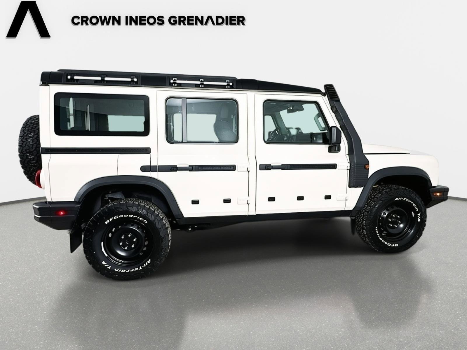 INEOS Grenadier, uncompromised 4x4 vehicle. Turbocharged. Four Wheel Drive. Locking/Limited Slip Differential. Power Steering. ABS. 4-Wheel Disc Brakes. Steel Wheels. Tires - Front All-Terrain. Tires - Rear All-Terrain. Conventional Spare Tire. Tow Hooks. Heated Mirrors. Power Mirror(s). Rear Defrost. Intermittent Wipers. Variable Speed Intermittent Wipers. Power Door Locks. Daytime Running Lights. Automatic Headlights. LED Headlights. Automatic Highbeams. AM/FM Stereo. Navigation System. Satellite Radio. Bluetooth Connection. Smart Device Integration. Requires Subscription.