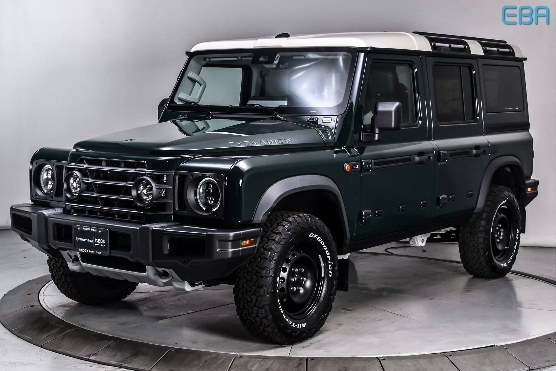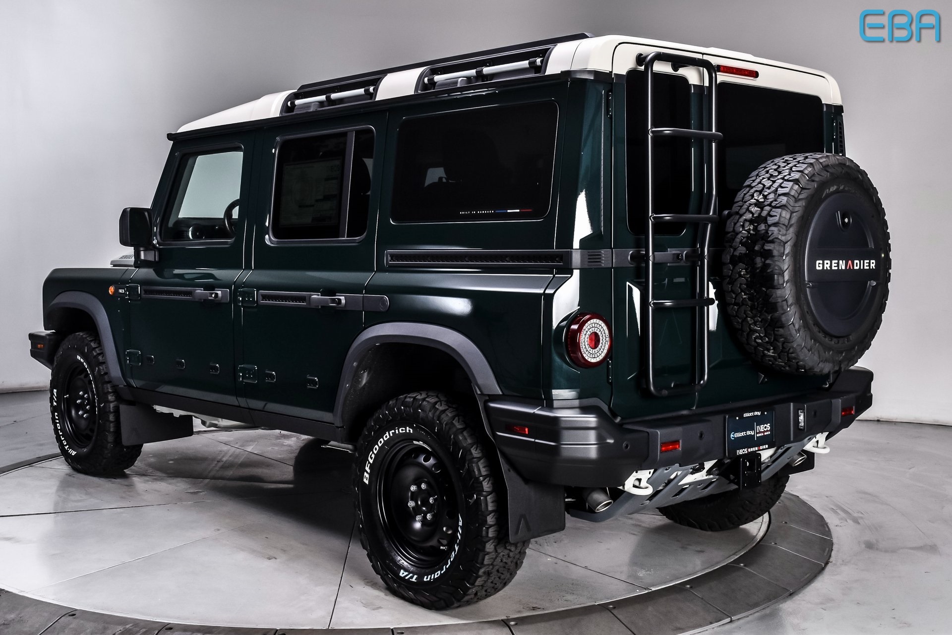 2026 INEOS Grenadier Sela Green 3.0L I6 Sela Green Exterior Color, Scottish White Contrast Roof, Rhino Grey Contrast Ladder Frame, Rough Pack, BFGoodrich All-Terrain KO2 Tires, Front and Rear Differential Locks, Fire Extinguisher, Tow Hitch, Heat Reflective Privacy Glass, Exterior Utility Belt, Premium Sound System, Heated Seats, Saddle Leather Driver's Pack, Power Take-Off 400W, Roadside Emergency Kit, High Load Auxiliary Switch Panel, Access Ladder, Spare Wheel Lockable Storage Box, Interior Utility Rails. Elliott Bay Ineos Grenadier "Built for more, built on relationships, roads optional" Come and experience the Elliott Bay difference.