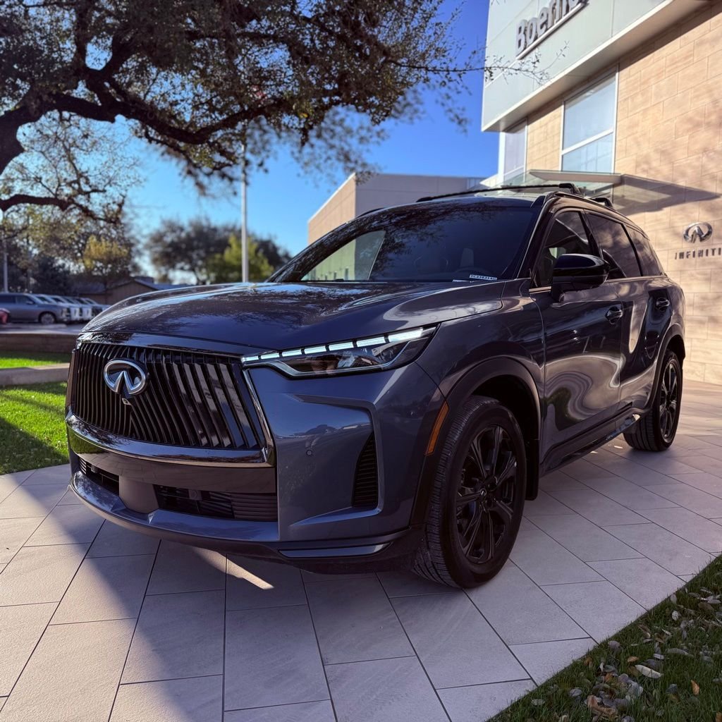 2026 INFINITI QX60 Autograph AWD | Technology Package with ProPILOT Assist 2.1 | Klipsch 20-Speaker Audio | Retired Courtesy Vehicle | Clean CARFAX. Moonbow Blue over Black Obsidian, Saddle Brown quilted semi-aniline leather inside this is not the color combination you'll see twice on the same lot. With just 4 miles on the odometer and INFINITI Certified Pre-Owned protection, this 2026 INFINITI QX60 Autograph is the most fully equipped three-row luxury crossover we have in inventory, and it's ready for whatever the Hill Country throws at it. The Technology Package elevates this Autograph above the rest of the lineup. ProPILOT Assist 2.1 delivers a more advanced level of hands-on highway driving assistance than the standard 1.1 system, while the 3D Around View Monitor gains Spin Capability for a full rotating perspective around the vehicle. The 2.0L Variable Compression Turbo engine produces up to 268 horsepower and 286 lb-ft of torque through a 9-Speed Automatic Transmission with paddle shifters and INFINITI Intelligent All-Wheel Drive. A factory-installed Tow Hitch with 7-Pin Connector and Trailer Stability Control means this Autograph can handle a weekend trailer to the Guadalupe River or a gear haul out to Bandera Road without breaking a sweat. Saddle Brown Quilted, Semi-Aniline Leather-Appointed seating with Contrast Stitching and Piping sets the cabin tone across the first and second rows, with a Panoramic Illuminated Headliner adding ambient depth overhead. Three displays define the cockpit a 12.3-Inch INFINITI InTouch Interactive Display, a 12.3-inch Dynamic Meter Display, and a 10.8-Inch Head-Up Display that keeps speed, navigation, and assist data at eye level. Premium Two-Tone paint Moonbow Blue over Black Obsidian over 20-Inch Aluminum-Alloy Wheels with black roof rail crossbars and dark illuminated cargo scuff plates round out the details.
