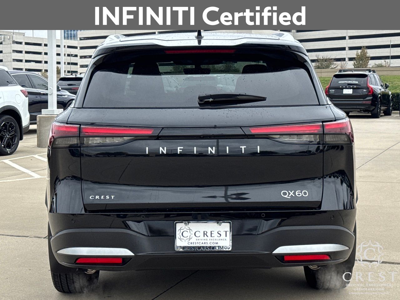 Certified. INFINITI Details: Eligible on Non-INFINITI Vehicles Up to 10 Years Old From New Warranty Start Date and Fewer than 100,000 Miles. 1 Prepaid Service Visit Included Within the First Year of Ownership (excludes EVs). 6 Months/6,000 Mile Limited Powertrain Warranty, $100 Deductible, 84 Point Inspection, Roadside Assistance, Select Makes/Models. 2026 INFINITI QX60 LUXE 22/28 City/Highway MPG Thank you for viewing our vehicle. You can see more Premium Pre-Owned vehicles like this one at CrestCars.com. Crest Automotive Group proudly serving the following communities: Plano, Mckinney, Allen, Richardson, Dallas, Ft. Worth, Grapevine, Bedford, Hurst, Mesquite, Frisco, Lewisville, Little Elm, Arlington, Coppell, Grand Prarie, Euless, Colleyville, Wylie, Lavon, Prosper, Denton, Murphey, Anna, Celina, Sherman, Southlake, Flowermound, DFW, Addison, Irving, Las Colinas, Garland, Aubrey, Oak Point, Corinth, University Park, Highland Park, Carrolton, Richardson, Melissa, Azle, Lake Dallas, Krum, Roanoke, Keller, Trophy Club, Farmers Branch. Haslet, Bedfprd. Euless, Hurst, North Richland Hills, Saginaw, Justin, Benbroook, White Settlement, Hudson Oaks, Weatherford, Crowley, Watauga, Cedar Hill, Desoto, Duncanville, Midlothian, Waxahachie, Mansfield, Red Oak, Lancaster, Ennis, Palmer, Balch Springs.