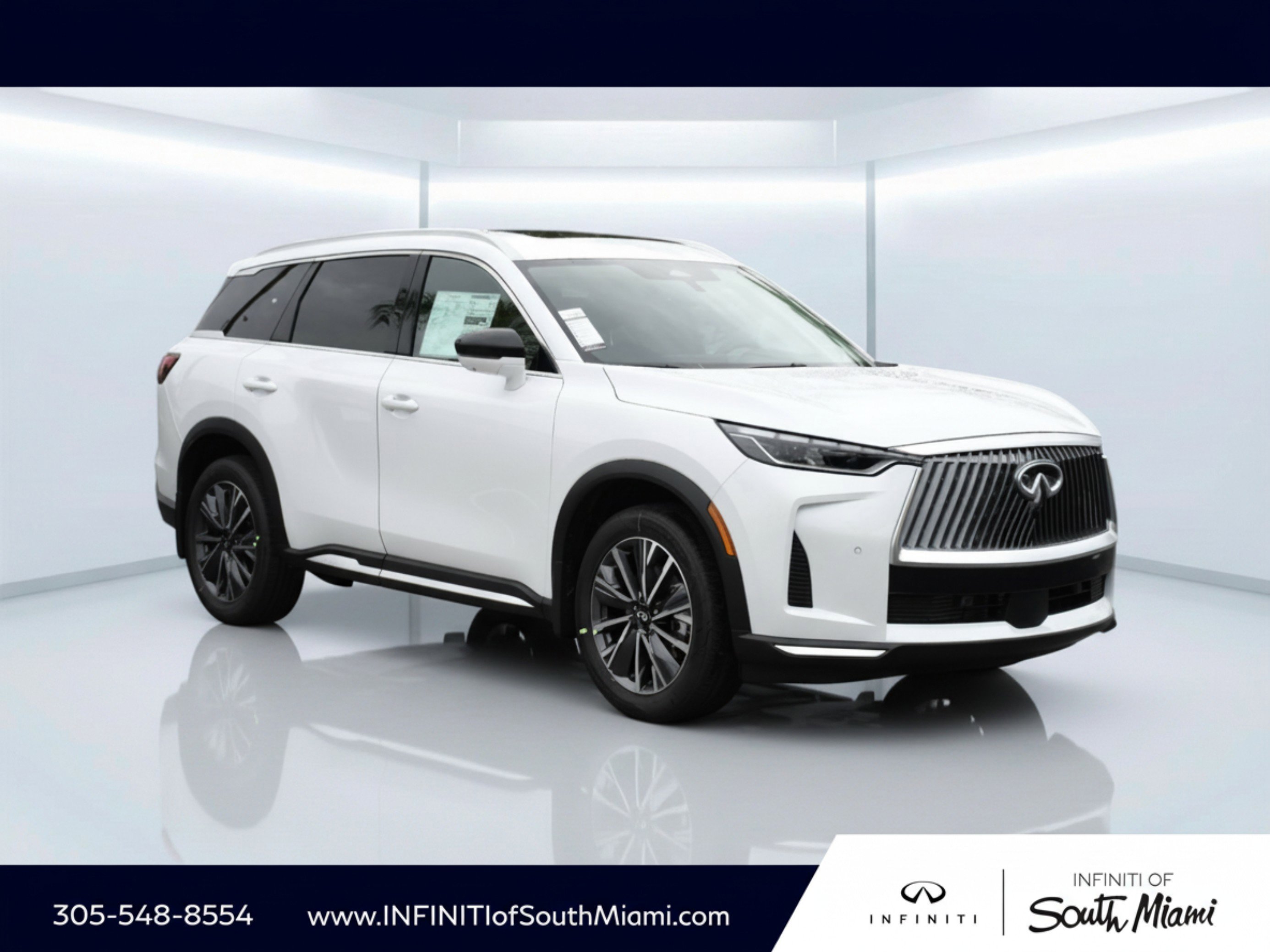 Recent Arrival! White 2026 INFINITI QX60 Luxe. Price includes $5000 Retail Cash. Exp. 03/31/2026.
