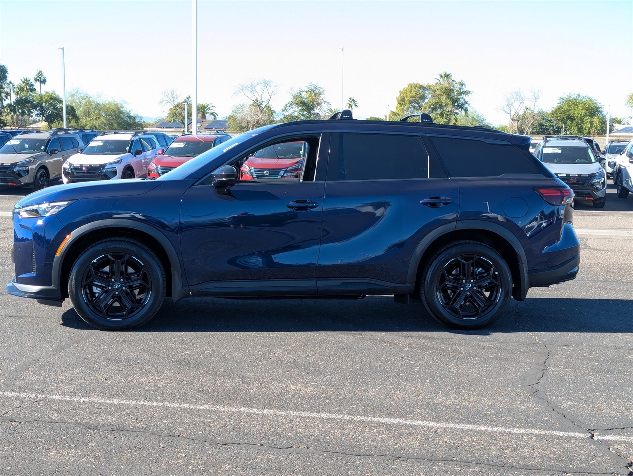 The 2026 INFINITI QX60 Sport AWD offers a blend of luxury, performance, and versatility. With a spacious interior featuring Dusk Blue TailorFit-Appointed Seating, advanced safety features, and a powerful 2.0L VC-Turbo engine, this SUV is designed for comfort and confidence on the road. Enjoy premium amenities such as a panoramic sunroof, leatherette steering wheel, and genuine wood interior trim, all wrapped in a stylish Grand Blue exterior.