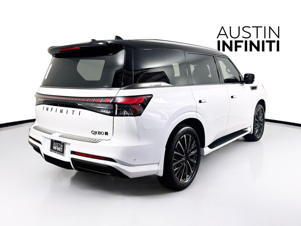 Radiant White/Black Obsidian 2026 INFINITI QX80 AutoGRAPH 4WD 3.5L V6 DOHC 24V Full Safety Inspection Check. The allnew 2026 INFINITI QX80 is a luxury vehicle that features a powerful engine and a comfortable interior.