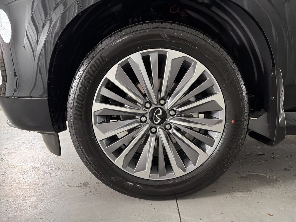 LUXE 360 Camera, Active Park Assist, Adaptive Cruise Control, Apple CarPlay and Android Auto, Automatic Headlights, Backup Camera, Blind Spot Monitors, Bluetooth, Hands-Free, Cargo Blocks/Stabilizers, Cargo Net, Cargo Package, Collision Avoidance System, Collision Warning Alert System, GPS / Nav, Heads-Up Display, Heated & Cooled Seats, Heated front seats, Heated rear seats, Heated Seats, INFINITI Radiant Silver Cargo Scuff Plates, Keyless Access w/Push Button Start, Keyless Entry, Lane Keeping Assist, Leather Seats, Memory seat, Multi-zone Climate Control, Navigation system: Google Built-in, Panoramic Illuminated Headliner, Panoramic Sunroof, Portable Audio Connection, Power Liftgate, Power moonroof, Premium Audio, Premium Wheels, Push Button Start, Radio: Klipsch Premium Audio System, Remote Start, Security System, Silver Interior Lighting Package, Smartphone App Integration, Soft-Sided Cargo Cooler, Steering Wheel Controls, Sunroof Moonroof, Touch Screen Controls, Trailer Hitch, Ventilated front seats, Ventilated rear seats, Wheels: 22" x 8.5J Cast Aluminum Alloy.