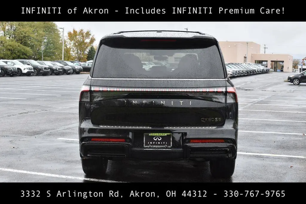The 2026 INFINITI QX80 Sport is a luxurious and powerful SUV designed to offer a blend of performance, comfort, and advanced technology. This new model comes in a striking Mineral Black exterior color, complemented by a sophisticated Graphite interior, creating an elegant and modern aesthetic. Under the hood, the QX80 Sport is powered by a robust 3.5L V6 DOHC 24V engine, paired with a 9-speed automatic transmission. This combination ensures a smooth and responsive driving experience, whether you're navigating city streets or cruising on the highway. The vehicle's 4WD drivetrain enhances its capability, making it suitable for various terrains and weather conditions. Inside, the QX80 Sport offers a spacious and luxurious cabin with seating for up to eight passengers, thanks to its 3rd-row bench seats. The interior is adorned with unique Sport Semi-Aniline Leather Seating Surfaces, providing both comfort and style. The front bucket seats are heated, ventilated, and equipped with massage functions, ensuring a relaxing ride for the driver and front passenger. Rear passengers also enjoy heated and ventilated seats, adding to the overall comfort. The QX80 Sport is equipped with a host of advanced safety and convenience features, ensuring peace of mind and ease of use. These include adaptive cruise control, collision warning system, 360-degree camera, blind-spot monitors, emergency communication system, keyless access with push button start, navigation system with Google Built-in, Klipsch Reference Premiere Audio System, dual-zone automatic temperature control, heads-up display, power moonroof, genuine wood dashboard and door panel inserts, auto-dimming door mirrors, heated and power door mirrors, spoiler and turn signal indicator mirrors, 22" x 8.5J Unique Sport Alloy wheels, rain-sensing wipers and rear window wiper. The exterior design is both bold and functional. Overall, the 2026 INFINITI QX80 Sport is a premium SUV that combines luxury, performance and cutting-edge technology, making it an ideal choice for those seeking a high-end driving experience.