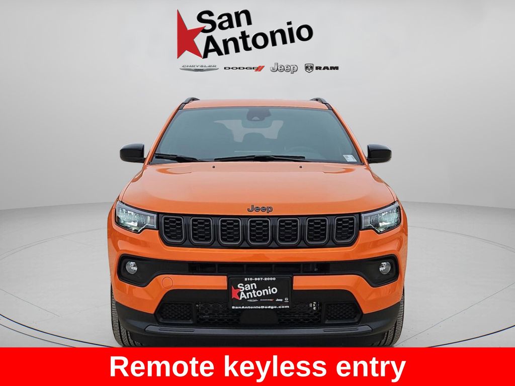 Elevate your driving experience with the 2026 Jeep Compass Altitude Special Edition. This captivating SUV combines style, capability, and cutting-edge technology, making it the perfect companion for your adventures. Powered by a 2.0L I4 DOHC engine and equipped with 4WD, this Compass delivers impressive performance and efficiency, with an EPA-estimated 23 city/31 highway MPG. The 8-speed automatic transmission ensures a smooth, responsive ride, while the advanced 4WD system provides the confidence to tackle any terrain. Step inside and experience the premium cabin, featuring Altitude-exclusive touches like the Piano Black interior accents and sliding sun visors with illuminated mirrors. The 10.1" Uconnect 5 touchscreen display puts a world of connectivity and entertainment at your fingertips, while the heated front seats provide comfort on even the coldest days. With a bold, distinctive Orange exterior and a host of advanced safety features, including Electronic Stability Control, ParkView Rear Back-Up Camera, and Low Tire Pressure Warning, this Compass Altitude Special Edition is both stylish and secure. Don't miss your chance to own this exceptional 2026 Jeep Compass Altitude Special Edition. Schedule a test drive today and experience the difference for yourself. Find your new Chrysler, Dodge, Jeep, or RAM right here in San Antonio! Serving nearby cities like Cibolo, Selma, Converse, and New Braunfels — plus premium neighborhoods like Alamo Heights and The Dominion — San Antonio Dodge is your go-to dealer for new vehicles. And with our Easy Price Promise, you'll always know you're getting a great deal. Come see us today — no stress, just the keys to your next vehicle.