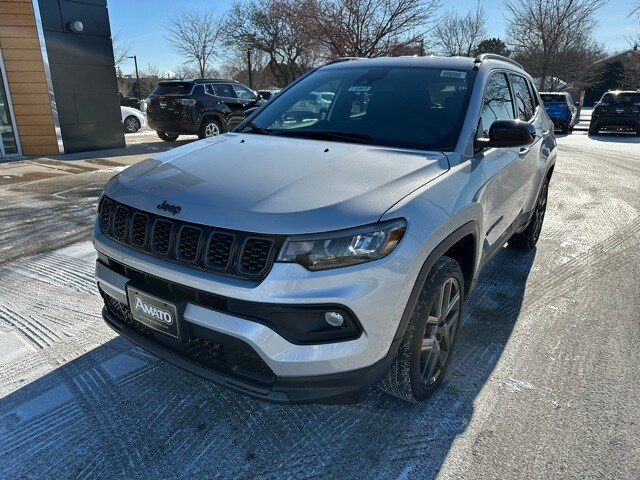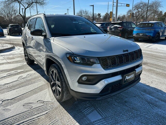 The 2026 Jeep Compass Latitude Altitude 4x4 blends bold styling, modern technology, and confident all-weather capability in a versatile compact SUV. Finished in Silver Zynith Metallic Clearcoat with a Black interior, this Compass features the distinctive Altitude appearance combined with Jeep's proven four-wheel-drive performance. Power comes from a 2.0L turbocharged 4-cylinder engine paired with an 8-speed automatic transmission, delivering responsive performance and efficient everyday drivability. The full-time 4x4 system enhances traction and control across changing road and weather conditions. Exterior highlights include black bodyside cladding, body-colored bumpers and door handles, deep-tinted glass, LED headlights with automatic high beams, cornering lights, and a rear spoiler that adds a sporty, refined look. Inside, the Compass offers a comfortable and tech-focused cabin with heated front seats, a heated leather-wrapped steering wheel, premium cloth/vinyl seating, and a sliding front center armrest. Technology features include Uconnect 5 with a large touchscreen display, Apple CarPlay, Android Auto, Bluetooth connectivity, SiriusXM, 4G LTE Wi-Fi hotspot capability, and a digital driver information center. Advanced safety features include Forward Collision Warning with Active Braking, Blind Spot Monitoring, Cross Path Detection, Driver Monitoring Alert, ParkView rear backup camera, and a full suite of airbags for added peace of mind. With its sharp Altitude styling, capable 4x4 system, and advanced technology, the 2026 Jeep Compass Latitude Altitude 4x4 is an excellent choice for drivers seeking comfort, confidence, and versatility in a compact SUV.