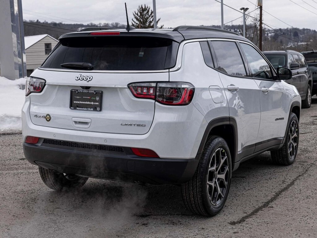 Bright White Clearcoat 2026 Jeep Compass Limited 4WD 8-Speed Automatic 2.0L I4 DOHC. Price includes $1000 National Retail Bonus Cash. Limited warranty available on most vehicles in stock with some exceptions. Come in or call for more details. Please note that all vehicles are subject to prior sale. Information deemed reliable, but not guaranteed. Interested parties should confirm all data before relying on online information to make a purchase decision.