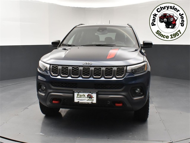 Born to push boundaries, our vehicle is a vehicle that features a TurboCharged 2.0 Liter engine and a full-time off-road suspension. This Four Wheel Drive SUV also has an off-road suspension system to handle adventure. Our vehicle achieves nearly 32mpg on the highway. Modern Jeep style comes into the picture with LED lighting, a black roof, and a black hood decal. Our Trailhawk cabin is for owners who like to take charge of their days. The comfortable interior has leather/premium-cloth front seats, red accent stitching, a premium-wrapped steering wheel, dual-zone automatic climate control, pushbutton ignition, keyless access, and versatile cargo space for your gear. Uconnect technology is standard for infotainment, offering easy connections with a 10.1-inch touchscreen, a 7-inch driver display, Apple CarPlay/Android Auto, WiFi compatibility, Bluetooth, voice activation, and six-speaker audio. Jeep helps you safely explore your world with smart features like automatic braking, blind-spot monitoring, a rearview camera, active lane management, adaptive cruise control, and more. Our Compass Trailhawk is a compact SUV leader with features like those! Save this Page and Call for Availability. We Know You Will Enjoy Your Park Chrysler Jeep Test Drive Towards Ownership!