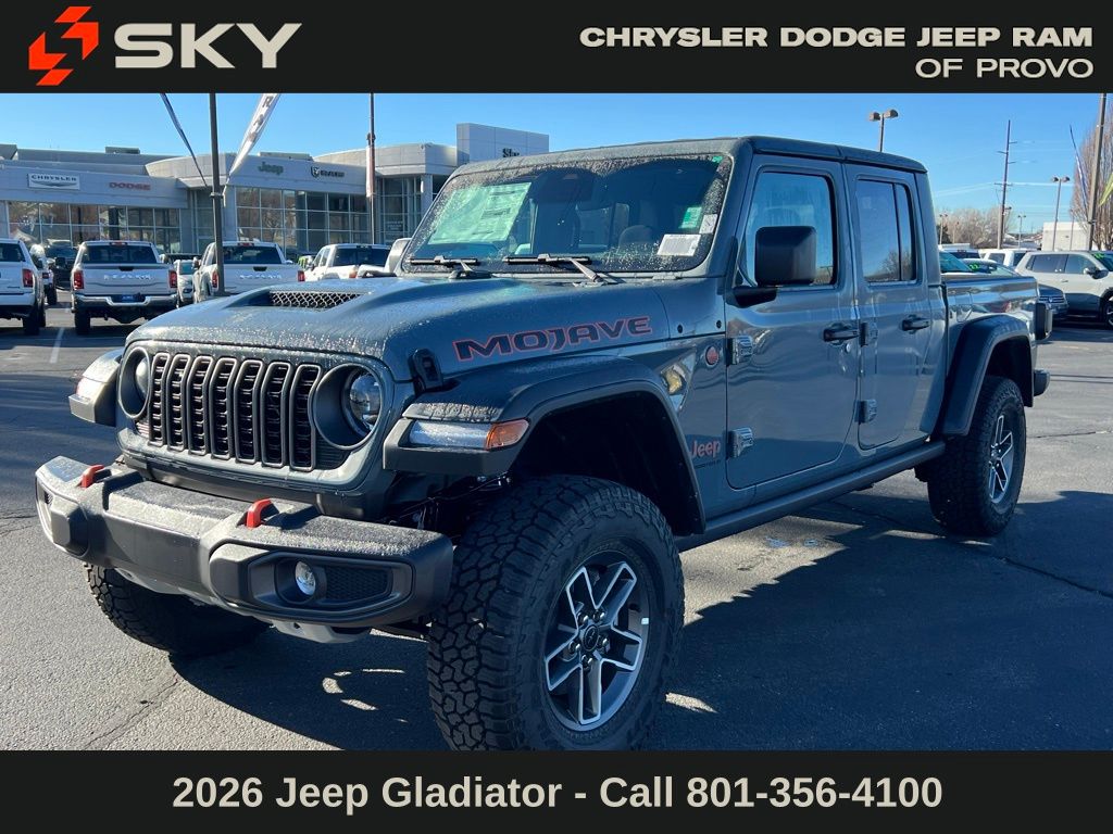 Adventure starts here with the new Jeep Gladiator, available now at Sky CDJR of Provo! As your local Jeep dealership near Salt Lake City, we know how to match Utah drivers with legendary 4x4 capability and open-road freedom. Whether it’s mountain trails or desert drives, the Gladiator is ready to take you there. Call 801-356-4100 today to start your next adventure! Anvil clearcoat 2026 Jeep Gladiator Mojave 4WD 8-Speed Automatic 3.6L V6 24V VVT.