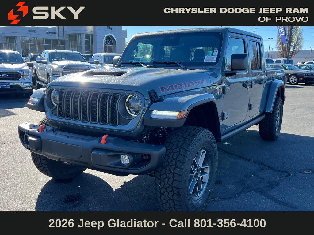 Adventure starts here with the new Jeep Gladiator, available now at Sky CDJR of Provo! As your local Jeep dealership near Salt Lake City, we know how to match Utah drivers with legendary 4x4 capability and open-road freedom. Whether it’s mountain trails or desert drives, the Gladiator is ready to take you there. Call 801-356-4100 today to start your next adventure! Anvil clearcoat 2026 Jeep Gladiator Mojave 4WD 8-Speed Automatic 3.6L V6 24V VVT.