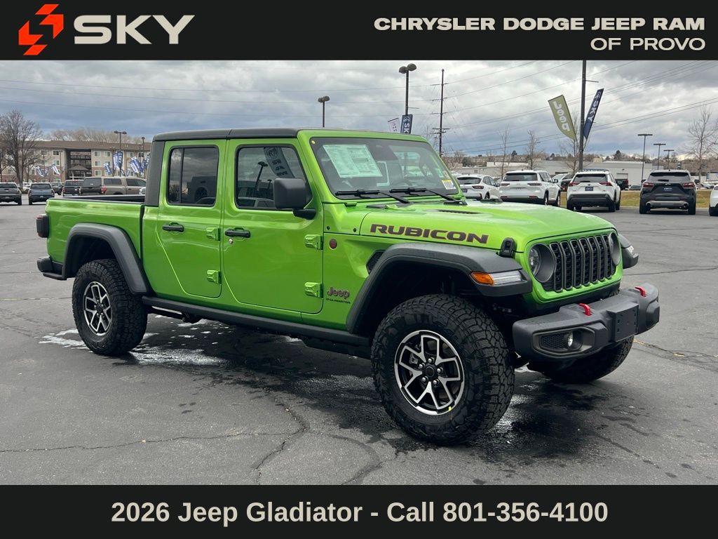 Adventure starts here with the new Jeep Gladiator, available now at Sky CDJR of Provo! As your local Jeep dealership near Salt Lake City, we know how to match Utah drivers with legendary 4x4 capability and open-road freedom. Whether it’s mountain trails or desert drives, the Gladiator is ready to take you there. Call 801-356-4100 today to start your next adventure! Mojito 2026 Jeep Gladiator Rubicon 4WD 8-Speed Automatic 3.6L V6 24V VVT.