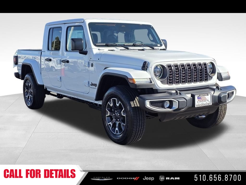 Bright White Clearcoat 2026 Jeep Gladiator 4WD 8-Speed Automatic 3.6L V6 24V VVT. Recent Arrival! Here at Crown Dodge Chrysler Jeep RAM, we believe that great service means more than just offering our new Dodge, Chrysler, Jeep, and RAM lineup. We believe that great service also includes helpful advice, friendly car financing, and the highest quality parts and repairs for your car. Our staff works hard to make your full automotive experience at our car dealership in Ventura, CA enjoyable, and we look forward to helping you today! All vehicles at Crown Dodge have our SWAT security system $995, Nitro $499, Clear Shield $395, touchscreen $395, wheel locks $395, windshield treatment $995, pulse breaking lights $395, paint and fabric protection, $1295 pre-installed. Standalone “APR financing is offered as a standalone incentive and is not eligible for combination with any other offers, incentives, or discounts.” The vehicle depicted is NOT the actual vehicle offered for sale by the Dealer. The photo represents a similar vehicle of the year, make, and model of the actual vehicle. Crown Dodge is home of the low-price guarantee!