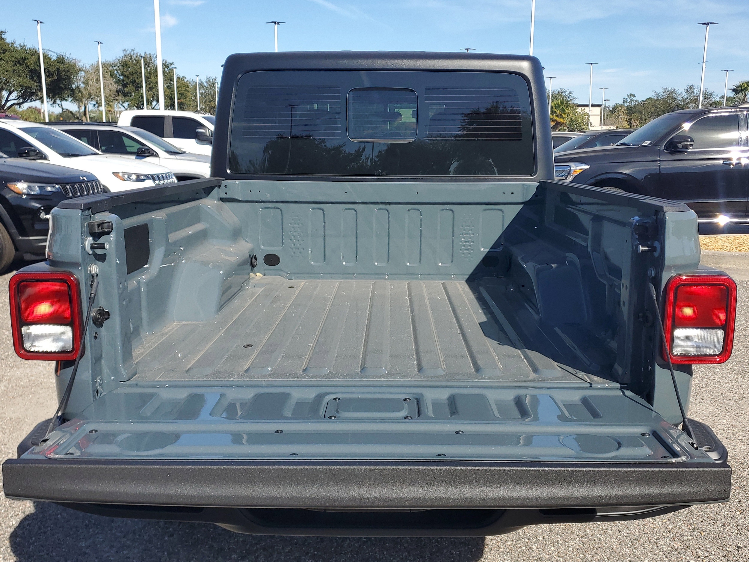 Anvil Clearcoat 2026 Jeep Gladiator Sport 4WD 8-Speed Automatic 3.6L V6 24V VVT. This vehicle comes equipped with a Quick Order Package 24B Sport, 110 Mph Vehicle Max Speed Calibration, 12.3 Touchscreen Display, 3.73 Rear Axle Ratio, 4-Wheel Disc Brakes, 4G LTE Wi-Fi Hot Spot, 8 Speakers, ABS brakes, Air Conditioning, Alexa Built-in, AM/FM radio: SiriusXM with 360L, Apple CarPlay, Apple CarPlay/Android Auto, Black 3-Piece Hard Top, Brake assist, Compass, Connectivity - US/Canada, Delay-off headlights, Driver door bin, Driver vanity mirror, Dual front impact airbags, Dual front side impact airbags, Electronic Stability Control, Freedom Panel Storage Bag, Front anti-roll bar, Front Bucket Seats, Front Center Armrest w/Storage, Front fog lights, Front License Plate Bracket, Front reading lights, Google Android Auto, Illuminated entry, Integrated roll-over protection, Low tire pressure warning, Manufacturer's Statement of Origin, MyFlexCare Service Plan, Normal Duty Suspension, Occupant sensing airbag, Outside temperature display, Overhead airbag, Panic alarm, ParkView Rear Back-Up Camera, Passenger door bin, Passenger vanity mirror, Power steering, Power windows, Radio data system, Radio: Uconnect 5 with 12.3 Display, Rear anti-roll bar, Rear reading lights, Rear Sliding Window, Rear Window Defroster, Remote keyless entry, Speed control, Split folding rear seat, Steering wheel mounted audio controls, Tachometer, Telescoping steering wheel, Tilt steering wheel, Traction control, Trip computer, USB Host Flip, Variably intermittent wipers, Voltmeter, and Wheels: 17 x 7.5 Black Steel Styled.