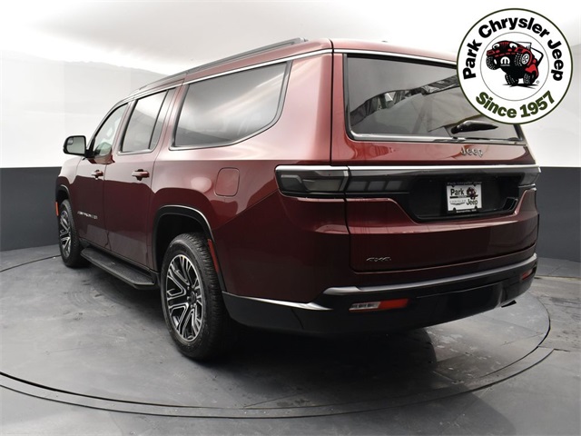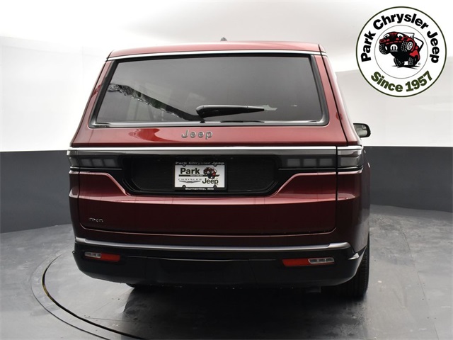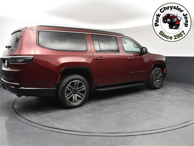The 2026 Jeep Grand Wagoneer L 4x4 is a new luxury sport utility vehicle with a 3.0L I6 engine and a full-time four-wheel drive system. This is the first of four new vehicles in the park. The vehicle features a full-size rear window and a high-speed automatic transmission. The interior is finished in Global Black and the exterior is finished in Velvet Red Pearl-Coat.