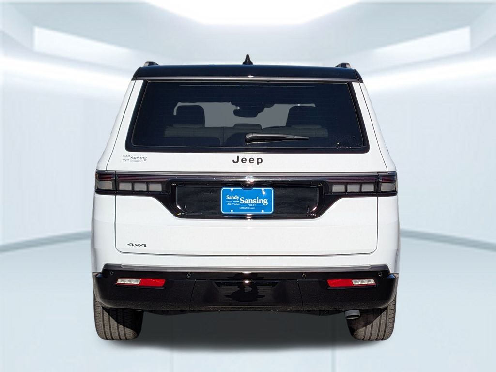 2026 Jeep Grand Wagoneer Summit Bright White Clearcoat 4WD 8-Speed Automatic 3.0L I6. Recent Arrival! Obsidian Appearance Package, Quick Order Package 29Z Obsidian (Black Chiseled Metal Interior Accent, Black Exterior Accents, Titanium Daylight Opening Upper, Titanium Upper Grille Applique, and Wheels: 22" x 9" Tinted Polished with Black Insert), Two Tone Paint Group, 118 Mph Maximum Speed Calibration, 19 Speakers, 3rd row seats: bench, 4-Wheel Disc Brakes, ABS brakes, Air Conditioning, Alloy wheels, AM/FM radio: SiriusXM with 360L, Anti-whiplash front head restraints, Apple CarPlay/Android Auto, Audio memory, Auto Adjust in Reverse Exterior Mirrors, Auto High-beam Headlights, Auto-dimming door mirrors, Auto-Dimming Exterior Driver Mirror, Auto-dimming Rear-View mirror, Auto-leveling suspension, Automatic temperature control, Brake assist, Bumpers: body-color, Compass, Delay-off headlights, Driver door bin, Driver vanity mirror, Driver's Seat Mounted Armrest, Dual front impact airbags, Dual front side impact airbags, Electronic Stability Control, Emergency communication system: Jeep Connect, Exterior Mirrors Approach Lamps, Exterior Mirrors with Memory, Exterior Mirrors with Supplemental Signals, Exterior Parking Camera Rear, Four wheel independent suspension, Front anti-roll bar, Front Bucket Seats, Front Center Armrest w/Storage, Front dual zone A/C, Front fog lights, Front reading lights, Fully automatic headlights, Garage door transmitter, Heated door mirrors, Heated Exterior Mirrors, Heated front seats, Heated rear seats, Heated steering wheel, Illuminated entry, Knee airbag, Leather steering wheel, Leather Trimmed Bucket Seats, Low tire pressure warning, Memory seat, MyFlexCare Service Plan.