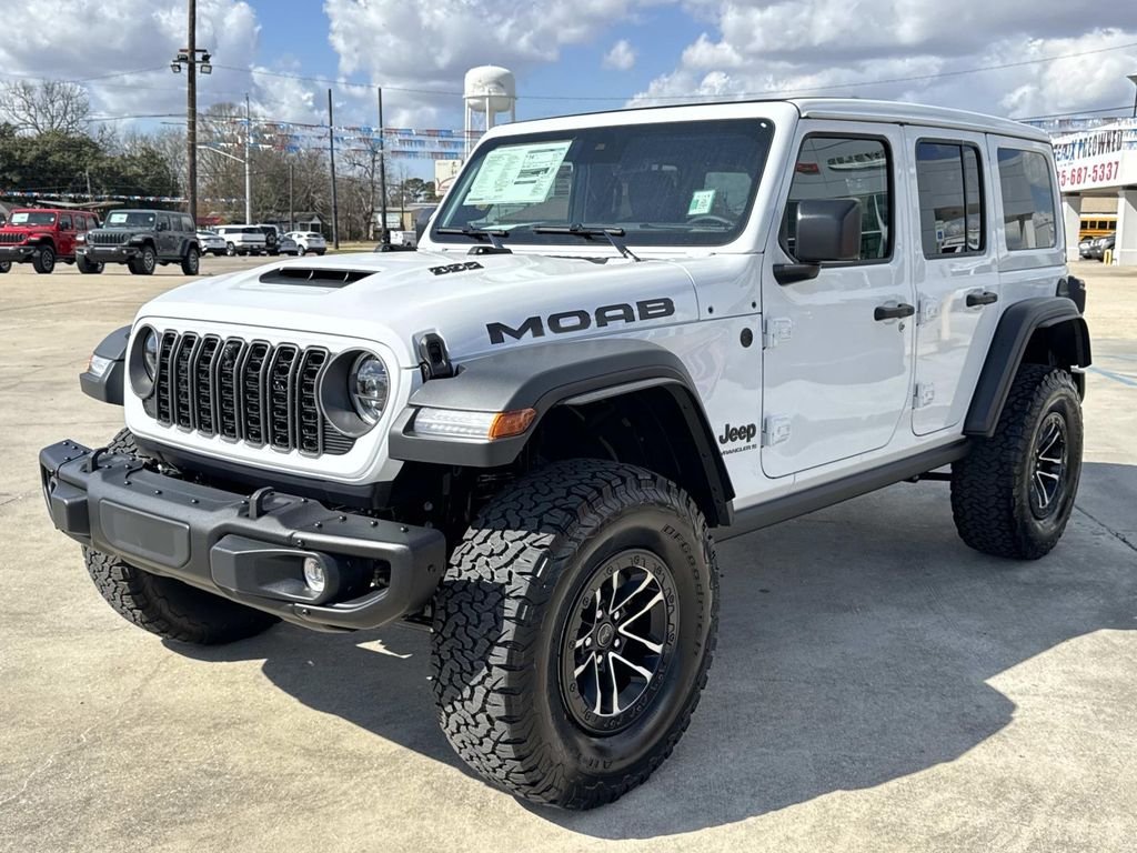 The 2026 Jeep Wrangler 4-Door Moab 392 features a Bright White Clear-Coat exterior and a Black interior. Powered by a SRT HEMI 6.4L V8 engine and equipped with a 8-speed automatic transmission, this off-road vehicle offers premium comfort and capability. Enjoy advanced technology, heated seats, and a full-size spare tire for added safety and versatility.