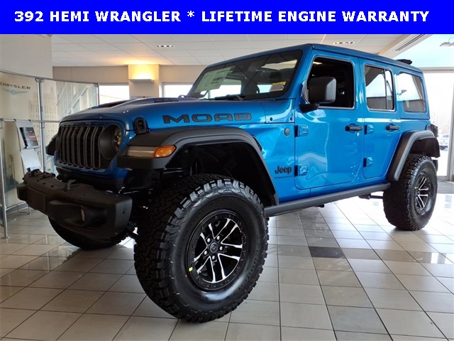 New Price! Hydro Blue Pearl Coat 2026 Jeep Wrangler Moab 392 4WD 8-Speed Automatic 3.6L V6 24V VVT Wrangler Moab 392, 4D Sport Utility, 3.6L V6 24V VVT, 8-Speed Automatic, 4WD, Hydro Blue Pearl Coat, Black Leather. Recent Arrival!
