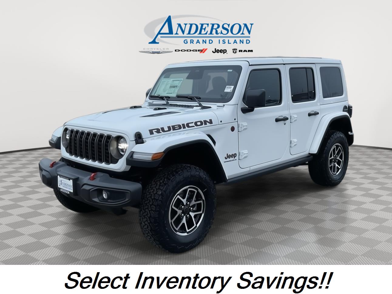 Discover the power and capability of the New 2026 Jeep Wrangler Rubicon at Anderson CDJR of Grand Island in Grand Island, NE. Whether you're shopping from Grand Island, NE or beyond, this new Wrangler offers the performance, comfort, and reliability drivers count on. Visit our dealership in Grand Island, NE to explore this New Jeep and more. We proudly serve the Grand Island, NE area with an unbeatable selection of cars, trucks, and SUVs.