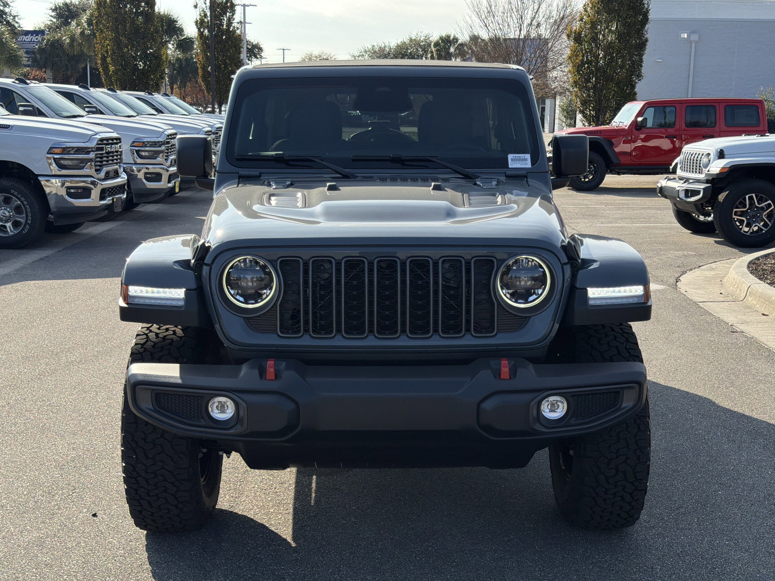 Heated Seats, Moonroof, Onboard Communications System, iPod/MP3 Input, Satellite Radio, Back-Up Camera, Aluminum Wheels, Trailer Hitch, SKY 1-Touch Power Top, Alpine Premium Audio System. Anvil Clearcoat exterior and Black interior. Jeep Rubicon with Anvil Clearcoat exterior and Black interior features a V6 Cylinder Engine with 285 HP at 6400 RPM. We are coastal Carolinas choice for pre-owned vehicles specializing in Jeeps, RAM trucks, Dodge, and Chrysler vehicles. Plus, we stock Hendrick Affordable and Hendrick Certified Pre-Owned vehicles in all makes and models. Conveniently located on College Road in Wilmington, NC.