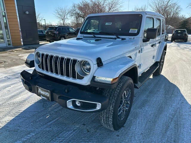 The 2026 Jeep Wrangler 4-Door Sahara 4x4 in Bright White Clearcoat with a Black interior combines rugged off-road capability with modern comfort. Powered by a 3.6L V6 engine with stop-start technology and paired with an 8-speed automatic transmission, this 4x4 is ready for any adventure. It features part-time four-wheel drive, a manual transfer case, auto-locking hubs, and heavy-duty suspension with gas shocks for smooth handling on and off the road. The front and rear solid axles, anti-roll bars, skid plates, and 3.45 top gear ratio enhance its off-road performance, while the electro-hydraulic power steering and single stainless steel exhaust provide reliable everyday drivability. Safety is a priority, with full-speed forward collision warning, collision mitigation, dual-stage front and side airbags, curtain airbags, blind-spot and cross-path detection, rear child safety locks, and a ParkView backup camera. On the exterior, the Wrangler Sahara stands out with removable rear and quarter windows, black power-heated mirrors, body-colored fender flares, front fog lamps, LED headlights and brakelights, 18" all-season tires, and a full-size spare mounted on the rear. The swing-out cargo access and deep-tinted windows make it as practical as it is stylish. Inside, it offers a comfortable and tech-savvy cabin. McKinley-trimmed seats with heated front seats, power-adjustable driver seat and lumbar support, and a 60/40 folding rear bench ensure everyone rides in comfort. The Uconnect 5 system with 12.3" touchscreen, GPS navigation, Apple CarPlay, Android Auto, SiriusXM with 360L, HD radio, and 4G LTE Wi-Fi hotspot keeps you connected, while features like adaptive cruise control, dual-zone voice-activated climate control, heated steering wheel, and overhead console storage enhance convenience on every trip. With a GVWR of 5,600 lbs, stop-start dual battery system, and integrated off-road camera, this Wrangler Sahara is built for adventure without compromising comfort or technology.