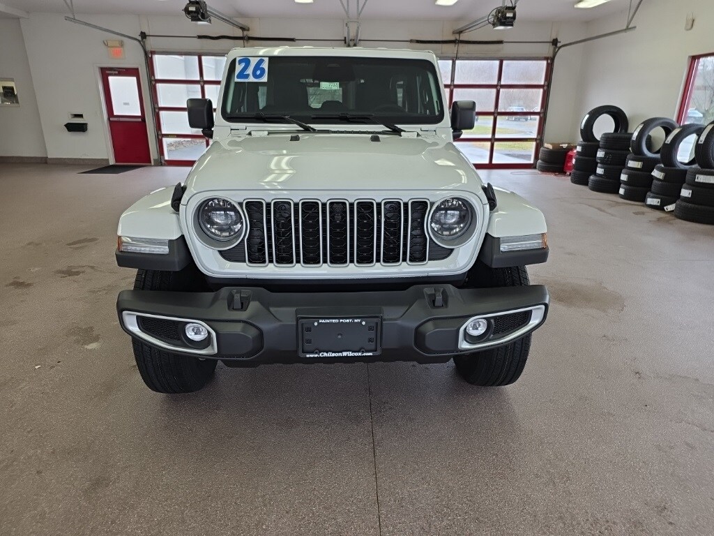 Bright White Clearcoat 2026 Jeep Wrangler Sahara 4WD 8-Speed Automatic 3.6L V6 24V VVT 12.3" Touchscreen Display, 4G LTE Wi-Fi Hot Spot, 7 and 4 Pin Wiring Harness, 8 Speakers, Alpine Premium Audio System, Apple CarPlay, Apple CarPlay/Android Auto, Auto High Beam Headlamp Control, Auto-Dimming Rear-View Mirror, Automatic temperature control, Aux Battery, Auxiliary Switches, Blind Spot and Cross Path Detection, Body Color 3-Piece Hard Top, Brake assist, Class II Receiver Hitch, Compass, Connected Travel and Traffic Services, Connectivity - US/Canada, Delay-off headlights, Electronic Stability Control, For More Info, Call 800-643-2112, Freedom Panel Storage Bag, Front dual zone A/C, Front fog lights, Fully automatic headlights, Google Android Auto, GPS Navigation, Hard Seat Back, HD Radio, Heated door mirrors, Heated front seats, Heated steering wheel, Heavy Duty Suspension with Gas Shocks, Integrated Center Stack Radio, Integrated Off-Road Camera, Integrated Voice Command with Bluetooth, Leather Wrapped Park Brake Handle, Leather Wrapped Shift Knob, Mckinley Trimmed Seats, Outside temperature display, ParkSense Rear Park Assist System, ParkView Rear Back-Up Camera, Power 4-Way Driver Lumbar Adjust, Power 4-Way Passenger Lumbar Adjust, Power Adjust 8-Way Driver Seat, Power Adjust 8-Way Front Passenger Seat, Power door mirrors, Power windows, Quick Order Package 24G, Radio: Uconnect 5 Navigation with 12.3" Display, Rear Window Defroster, Rear Window Wiper/Washer, Remote keyless entry, Sahara Popular Equipment Group, Side Steps, SiriusXM Radio Service, SiriusXM Radio Service is not service. The. . . . . .