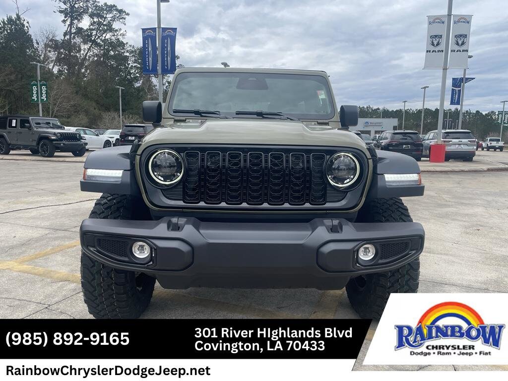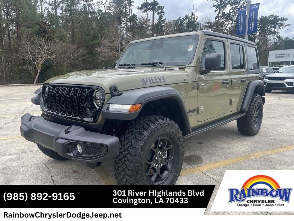 The 2026 Jeep Wrangler 4-Door Willys is a mid-size SUV that shines with a refined green finish. It comes equipped with Android Auto for seamless smartphone integration on the road, an off-road package, and remote start. The vehicle keeps you comfortable with Auto Climate and features a hands-free Bluetooth phone system. This model is pure luxury with a heated steering wheel. The Forward Collision Warning system alerts the driver to potential front-end collisions, enhancing safety. Maintaining a stable interior temperature is easy with the climate control system. See what's behind you with the back up camera on this model.
