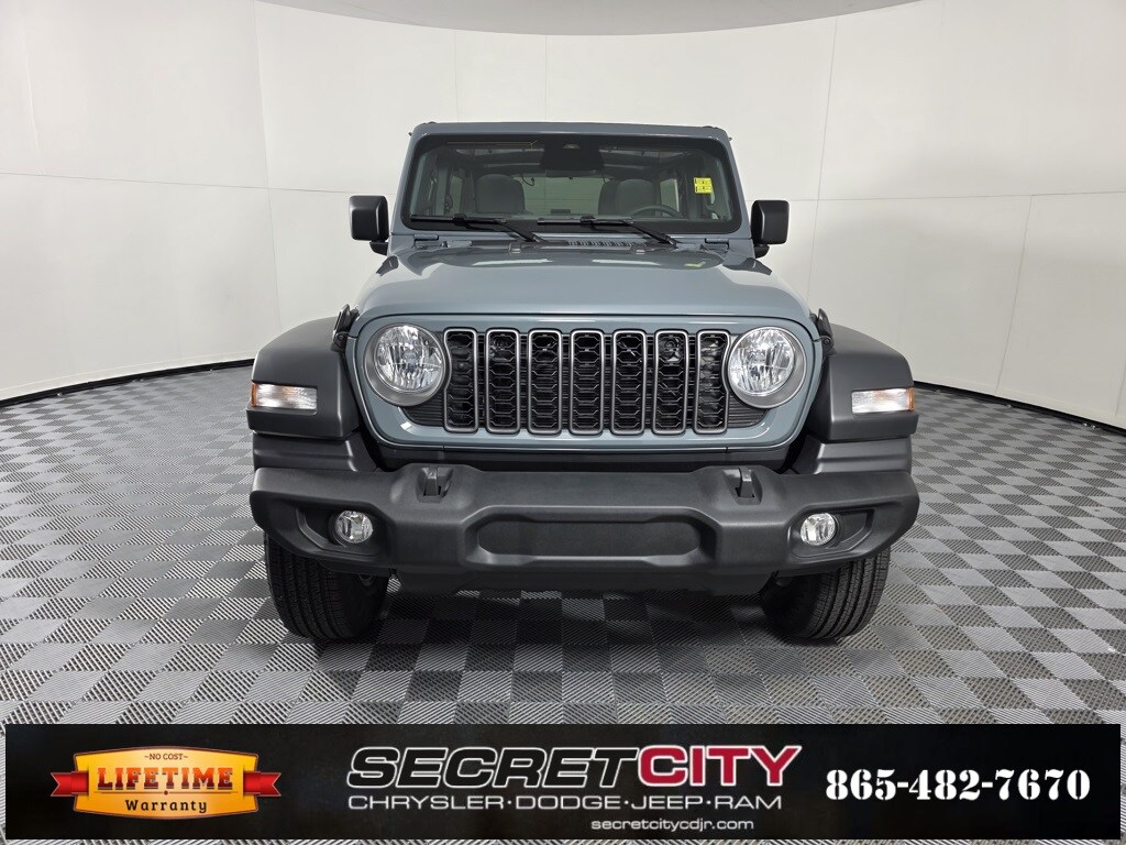 2026 Jeep Wrangler Sport S 3.6L V6 24V VVT 4WD 8-Speed Automatic Backup Camera, Bluetooth, Apple CarPlay / Android Auto, Life Time Powertrain Warranty, 12.3" Touchscreen Display, Advanced Brake Assist, AM/FM radio: SiriusXM with 360L, Apple CarPlay/Android Auto, Automatic Headlamps, Corning Gorilla Glass, Deep Tint Sunscreen Windows, Enhanced Adaptive Cruise Control, Full Speed Forward Collision Warning Plus, Power Heated Mirrors, Power Top Quarter Window Storage Bag, Premium Wrapped Steering Wheel, Quick Order Package 24S Sport S, Radio: Uconnect 5 with 12.3" Display, Rear Window Defroster, Rear Window Wiper/Washer, Removable Rear Quarter Windows, Security Alarm, SiriusXM with 360L, Sky One-Touch Power Top, Sun Visors with Illuminated Vanity Mirrors, Wheels: 17" x 7.5" Gray. Trade-In Bonus valid with a trade in vehicle, registered in consumer's name purchasing a new vehicle. Feature availability subject to final vehicle configuration. Please reference window sticker for more info or see dealer for complete details, as to which features and amenities are included on the vehicle and in the advertised vehicle price. Includes all applicable rebates, must qualify. Any special incentivized rate is on select qualifying models, With Approved Credit, per all lender qualifications, and through certain lenders. See dealer for complete details and qualifying units. Tax credit discount/incentive on the 4xe/Hybrid/electric vehicles are offered by a third party and are subject to change without notice. Confirm information to ensure accuracy and consult a tax professional for details and eligibility requirements. Income and other restrictions apply. Price does not include Tax, Title, License or $797 Dealer Fee; Price does include: $1500 - 2026 National Stellantis Loyalty Retail Bonus Cash . Exp. 01/05/2026.