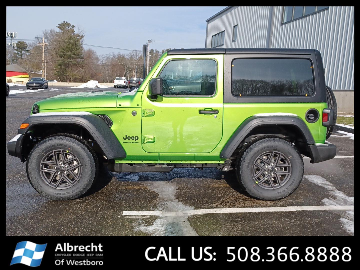 This New 2026 Jeep Wrangler Sport S, is Mojito Clearcoat in color with a Black interior. Stock Number 26142. You can connect with us by calling 508-366-8888. Every new vehicle sold comes with a 10 year/150K mile powertrain warranty, compliments of the Albrecht Auto Group. At Albrecht Chrysler Dodge Jeep RAM of Westboro, we're here to serve you! Our staff is 100% dedicated to customer satisfaction and we understand that you need clear, transparent information throughout the car buying process. With our live market pricing philosophy, we offer the right cars at the right price, and the transparency to back it up!