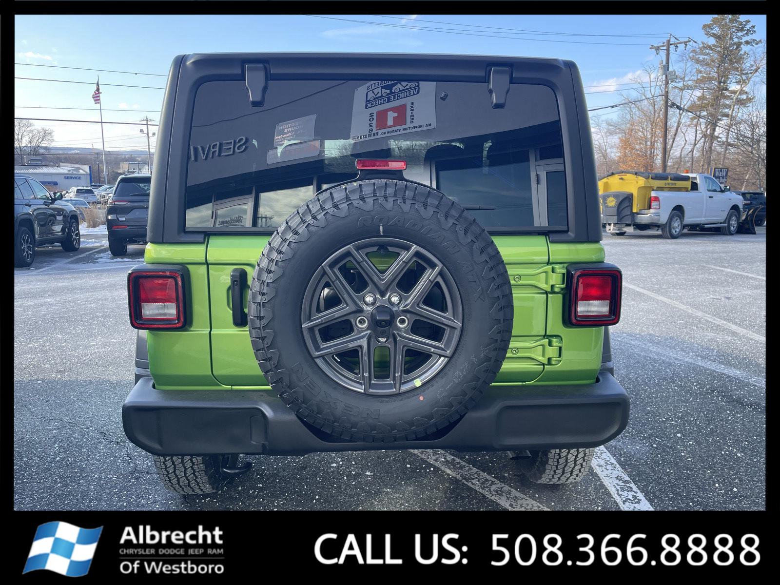 This New 2026 Jeep Wrangler Sport S, is Mojito Clearcoat in color with a Black interior. Stock Number 26141. You can connect with us by calling 508-366-8888. Every new vehicle sold comes with a 10 year/150K mile powertrain warranty, compliments of the Albrecht Auto Group. At Albrecht Chrysler Dodge Jeep RAM of Westboro, we're here to serve you! Our staff is 100% dedicated to customer satisfaction and we understand that you need clear, transparent information throughout the car buying process. With our live market pricing philosophy, we offer the right cars at the right price, and the transparency to back it up!